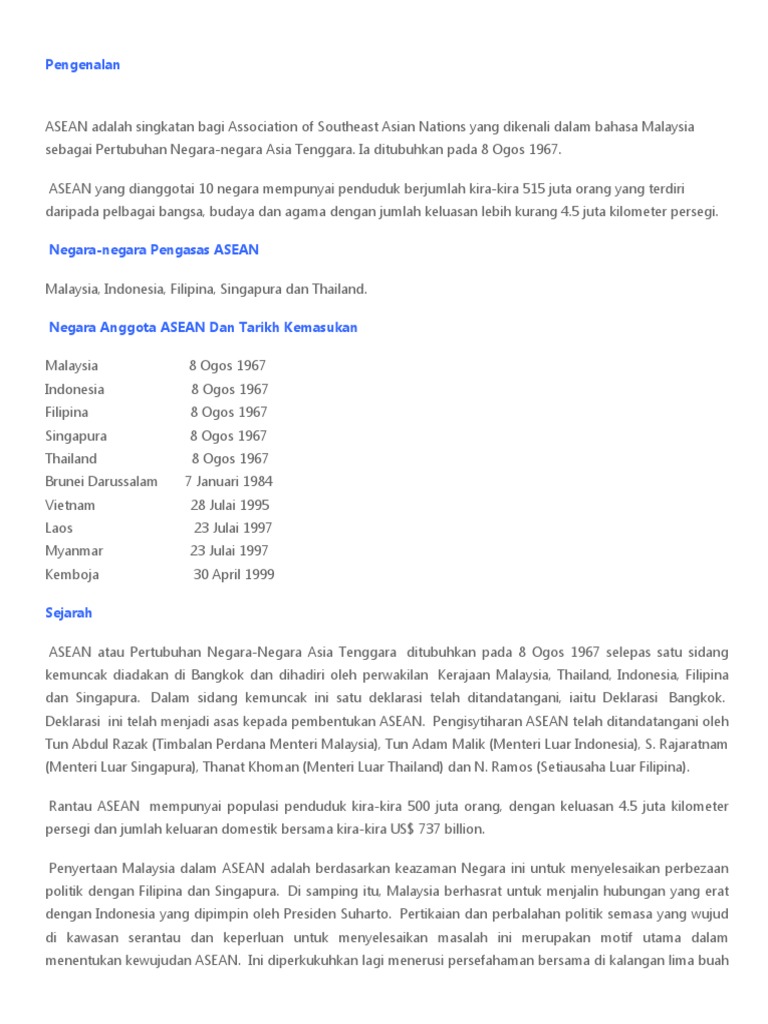 Related : Lima Negara Pengasas Asean - Pertamanya, mereka adalah negara pengasas asean..